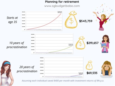 Considering that most Singaporeans plan to retire at 60 years old, this will require at least 25 years of retirement income that we will need to plan for. If you start early, you’ll be able to leverage the power of compounded growth over time to accumulate your retirement pot of savings.